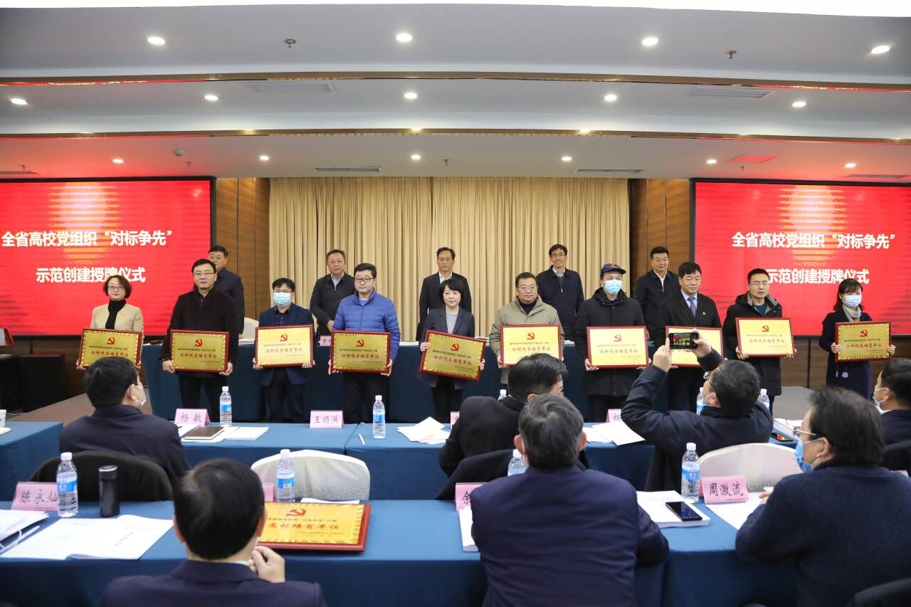 授牌仪式上,省委教育工委公布了首批全省高校党建工作示范高校、标杆院系、样板党支部、“双带头人”教师党支部书记工作室培育创建单位名单,我校融媒学院党总支入选“全省高校党建工作标杆院系”培育单位、文化旅游学院第一党支部入选“全省高校党建工作样板支部”培育单位、思想政治理论课教学部党支部马吉宏同志工作室入选“双带头人”教师党支部书记工作室培育单位。全省高校党组织“对标争先”示范创建单位共遴选产生10个示范高校、50个党建工作标杆院系、100个党建工作样板支部和100个“双带头人”教师党支部书记工作室,旨在全面贯彻落实习近平新时代中国特色社会主义思想和党的十九大精神,落实立德树人根本任务,营造学习先进、争当先进的良好氛围,推动高校党建工作和思想政治教育工作再上新台阶。