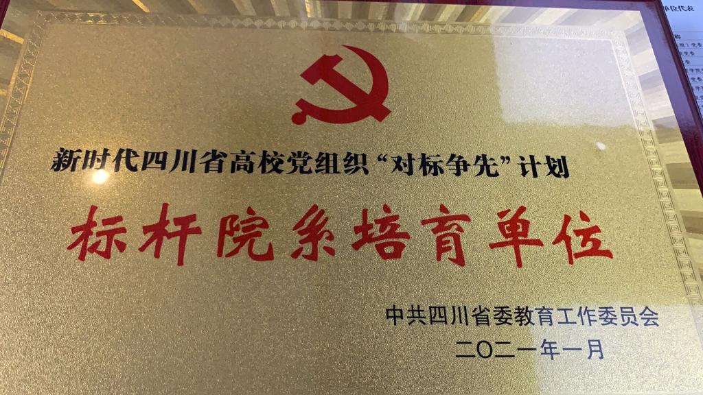 1月20日,全省高校党组织“对标争先”示范创建授牌仪式在成都举行。学院获得“全省高校党建工作标杆院系” 培育单位荣誉称号,党总支书记卢隽到场接受授牌。
