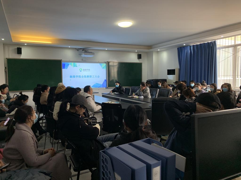 本学期融媒学院持续落实立德树人根本任务,现学期教学工作已接近尾声;12月30日,融媒学院在颖艺楼308召开全院教职工大会。学院党总支书记卢隽、执行院长秦勉、党总支副书记毛浩杰、副院长唐颖以及全体教师参加会议。会议由秦勉主持。