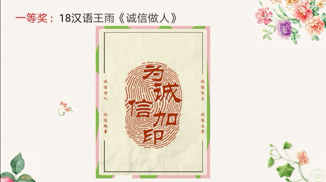 本次活动通过诚信教育与培育学生价值观的结合,积极引导学生把诚信意识转化为个人自觉素养与行为,在校园中唱响了诚信立身的主旋律。