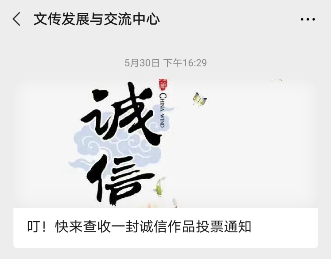 为引导学生树立诚信意识,鼓励学生做一个诚实守信、言行一致的人,5月19日至27日,文化传播学院学习部面向全院学生开展了线上诚信宣传作品征集活动,并于5月30日至31日通过线上投票评出一等奖1名、二等奖2名、三等奖3名及优秀奖3名。