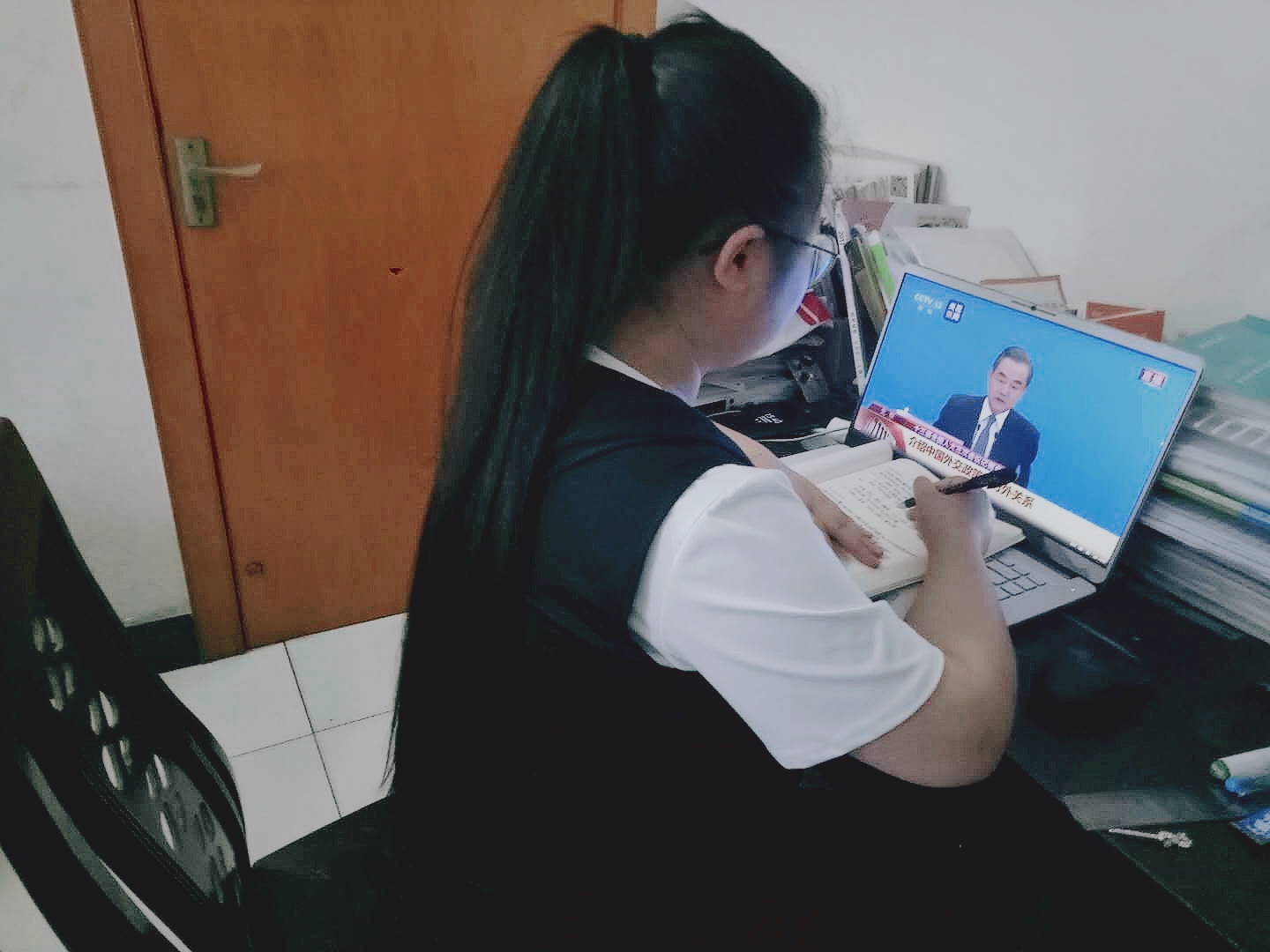 在学院倡导下,我院学生在家通过电视、手机、电脑等方式关注两会,获知两会热点,了解国家时政新闻。今年是特殊的一年,同学们关注两会后皆有所感所悟,“经历了疫情,作为一名大学生,我更加意识到时代赋予我们青年的责任使命。我会在未来学习工作中用实际行动履行青年义务,践行青年使命,决心做好新时代中国特色社会主义事业的接班人”,2018级出版商务班黎雪玲这样说到。