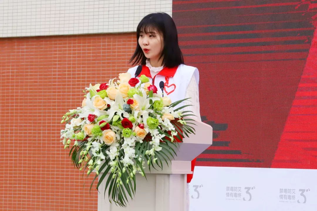 活动回顾了四川省禁毒防艾“三进”活动情况,并为在“禁毒防艾考察调研”相关社会实践课题中获奖的8支高校队伍颁发了奖杯和荣誉证书,向3支青年戒毒志愿者队伍代表授旗、发放服务证。仪式上,我院2017级学生李佳作为青年志愿者代表上台宣读《青年戒毒志愿者服务活动倡议书》,呼吁青年志愿者们积极行动起来,走进戒毒所、关爱戒毒人员,用青春谱写奉献乐章,在服务基层实践中锻炼成才。此外,她还将我院2019年暑期社会实践纪念册赠送给出席本次活动的领导与嘉宾,大家纷纷肯定了我院暑期社会实践活动成效。