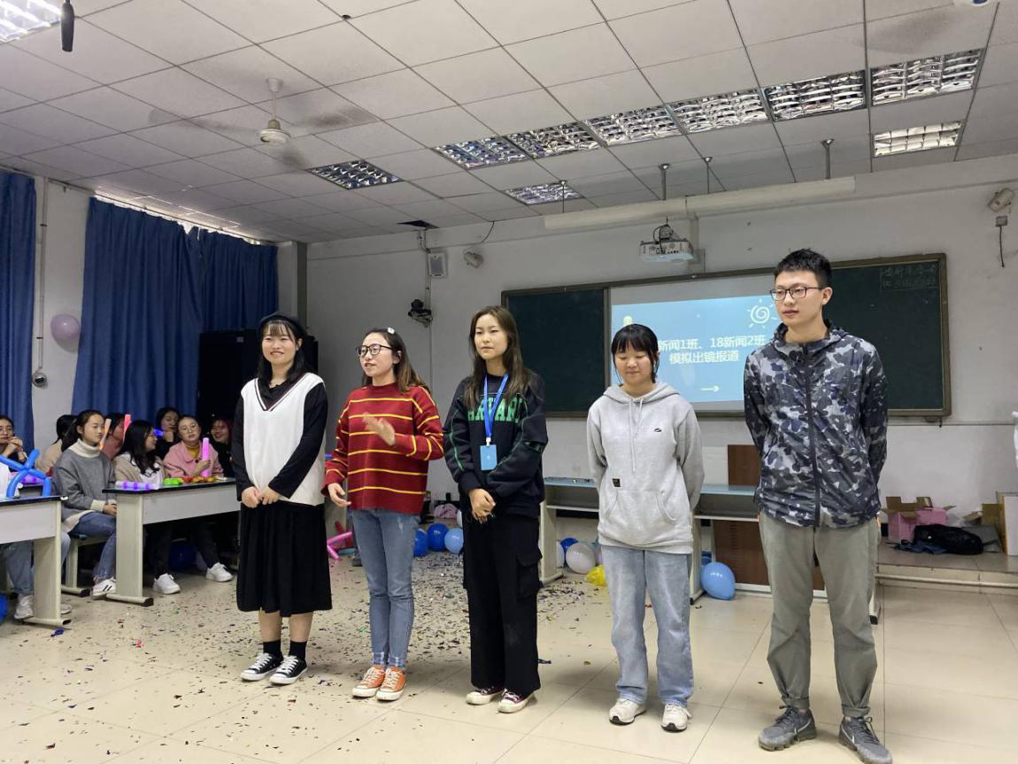 活动中,节目纷呈,同学们通过积极参与社团特色的“猜新闻”小游戏表达内心的热情,而展示新闻专业素养的模拟出镜报道节目更为联谊会添彩:“我以前只知道记者要24小时随时待命,要抢新闻,与时间赛跑,但看了今天的模拟出境报道节目,我发现记者面临突发情况时的处变不惊更应该是我们终身学习的方向。”有同学说到。