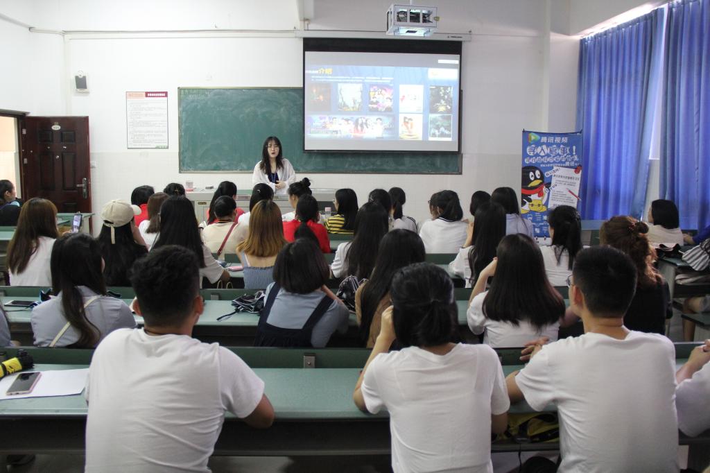6月13、14日下午,腾讯成都分公司分别在三教404和311为我院学生开展了“腾讯视频内容编辑实习生招聘”主题宣讲会。宣讲会由腾讯成都分公司腾讯视频项目主管王慧婷主讲,我院17级各专业共150余名学生参加。