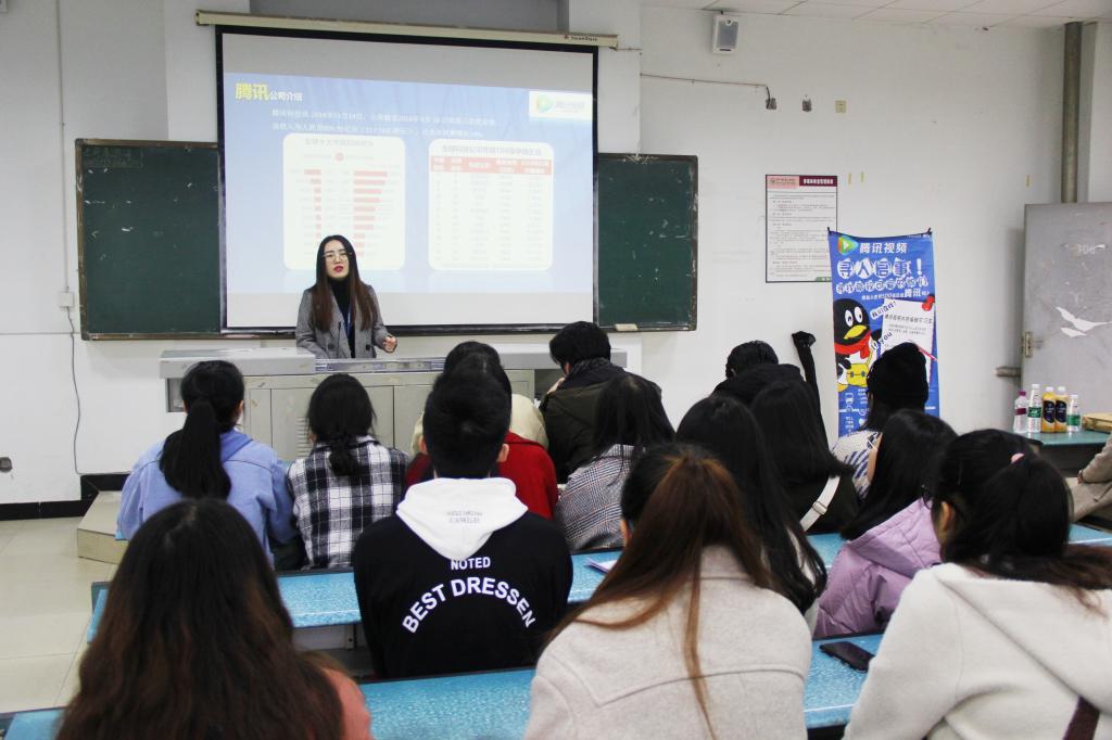 为做好2019届毕业生的实习就业工作,向同学们提供更多的实习岗位,11月26日至30日,我院在二教和三教连续一周举办了七场2019届毕业生宣讲会,参加本次宣讲会的有腾讯成都科技有限公司、新华文轩出版传媒股份有限公司等七家知名企业。