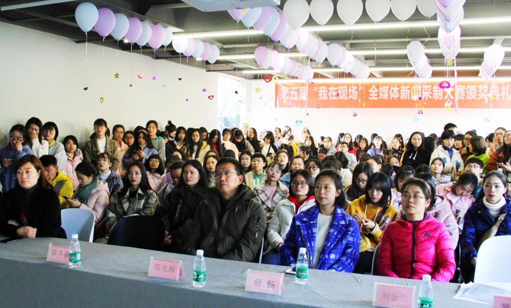 11月22日下午,文化传播学院第五届“我在现场”全媒体新闻采制大赛作品展暨颁奖典礼在斑马屋举行。我院院长郭光海、党总支副书记舒畅、新闻专业负责人黄妍、专业老师母华和教务科负责人陈卓菲、综合科负责人刘金兰出席了颁奖典礼。颁奖典礼由2016级新闻专业学生张紫艺主持。