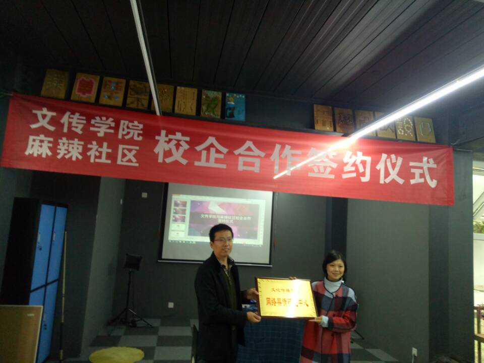 11月16日上午,我院在斑马屋举行文传学院与麻辣社区校企合作签约仪式。学院党总支书记、院长郭光海与麻辣社区副总经理郑艳签署校企合作协议。网络舆情监测专业负责人赖秦、网络舆情监测专业教师许珍、麻辣社区舆情中心内容总监任彤、麻辣社区舆情中心运营总监林浩及我院100多名师生参加仪式,仪式由专业教师马志红主持。
