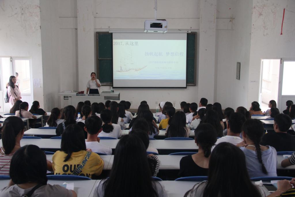 为帮助2017级新生尽快适应大学新生活,规划学习目标,加深专业认知,明确校园规范,9月22日,我院组织开展2017级新生入学教育。我院党总支副书记舒畅,分团委书记毛浩杰,新生辅导员,专业教师代表和全体新生参加了此次活动。