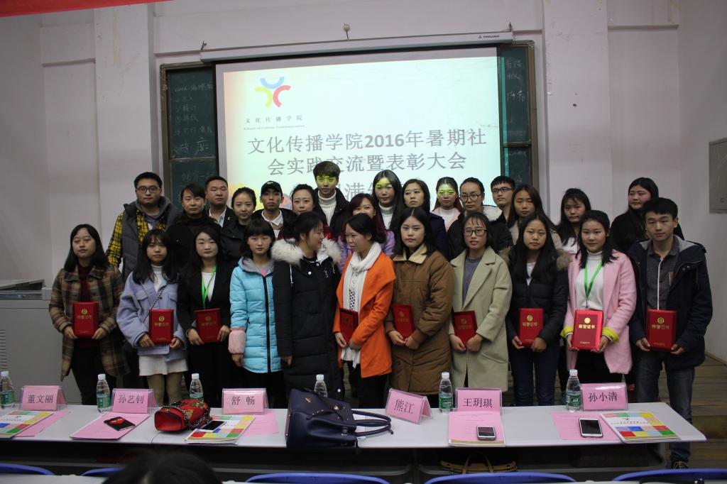 12月22日下午,我院2016年暑期社会实践交流暨表彰大会在第三教学楼213举行。我院党总支副书记舒畅,分团委副书记孙艺钊,暑期社会实践乐至分队带队老师熊江及全体辅导员老师参加了表彰大会。