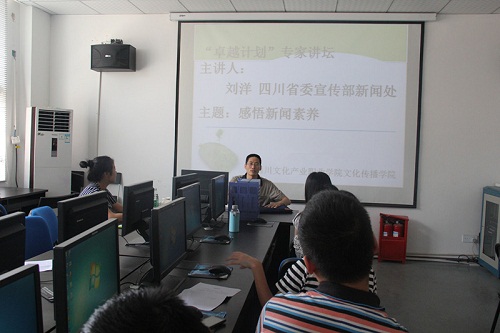 日前,“卓越计划”项目组邀请四川省委宣传部新闻处刘洋老师在创慧楼317为新闻专业师生作了一场题为“感悟新闻素养”的专题讲座。