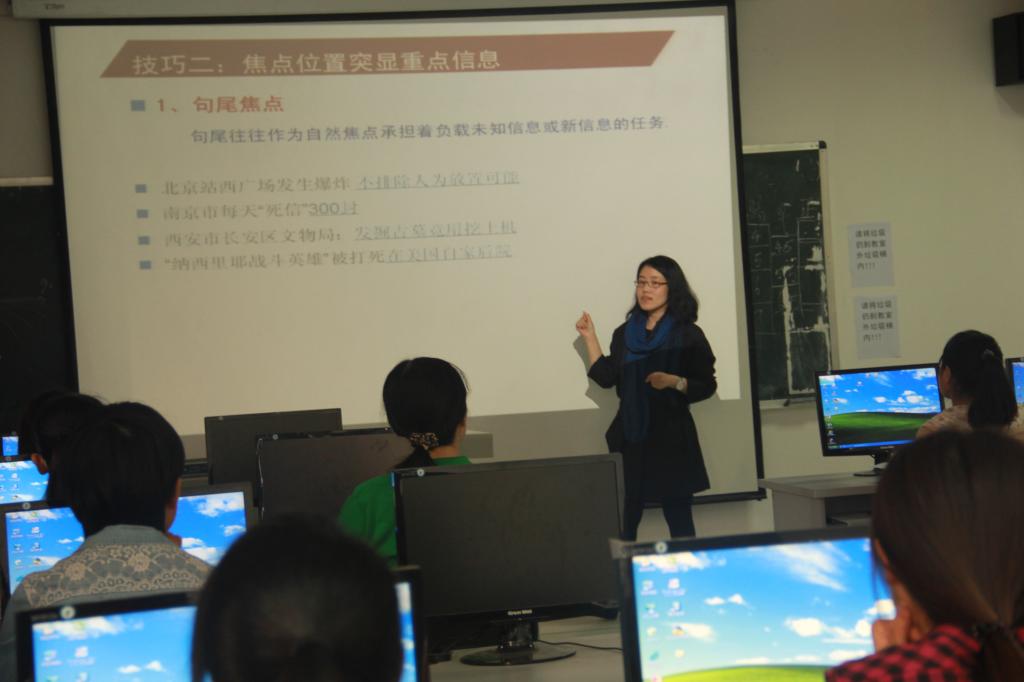 24日下午,上海版专的教师、专家与我校培育办公室向天华主任及文传学院的教师们以课程建设与人才培养创新模式为主题展开座谈。参会双方围绕主题,详细交流探讨了如何结合行业实际、创新性地完成人才培养方案的制定、示范项目的实施以及校企合作的展开等问题。其中,作为骨干高职院校示范专业带头人的靳琼老师特别以上海版专“校中店、校中社”的模式为例,与大家分享了不少专业建设经验。我校参会教师也介绍了我校关于专业建设与人才培养模式创新的尝试。