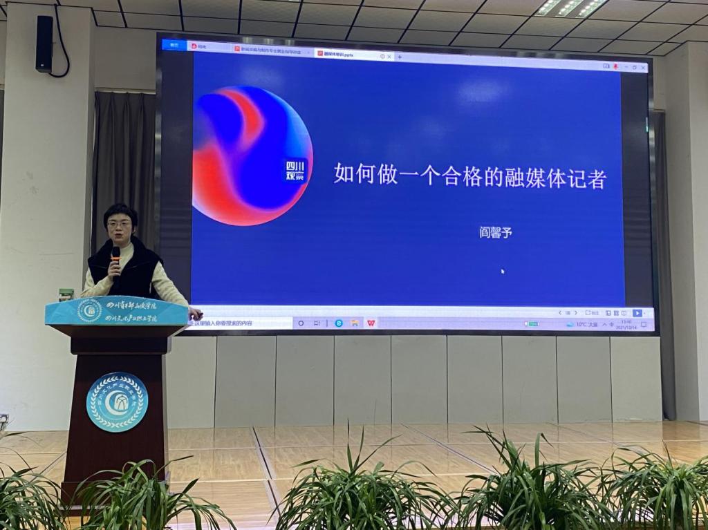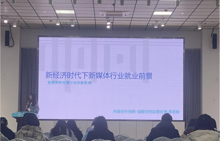 四川广播电视台全媒体新闻中心副主编阎馨予结合自身经历,深入浅出的讲解如何做成好新闻,分享了在全媒体的传播形式下,怎样用我们学的专业技能适应新的岗位,成为一个合格的传媒工作者。字节跳动内容合作创新成都空间运营负责人李若新就新经济时代下的新媒体行业就业前景发展进行考量,与同学们分享了新闻传播业的工作岗位选择,并仔细探讨了抖音、快手等新媒体服务平台的发展趋势。外聘教师何直朋对影视行业发展、就业现状和岗位要求等做了详细分析。李竹蔚老师结合本校历届毕业生的真实案例,分享了如何用职业生涯规划的理论和工具帮助学生度过职场初期,并讲解了在职场礼仪中需要注意的问题。刘璐老师结合大量案例分享了简历撰写的内容、排版设计和面试技巧,让简历成为就业的“敲门砖”。母华老师从选题、故事、结构和创新等方面对县级融媒体优秀获奖作品进行了深入分析和解读,让同学们加深了对县级融媒体中心的了解以及如何进行优质内容创作和生产。