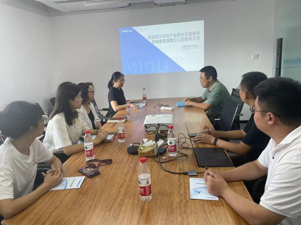 蜜度科技四川公司副总李伟、KA行业总监李文彦及四川代理公司四川小种籽教育科技有限公司总经理周裕勇热情接待了融媒学院一行,并带领大家参观了公司的工作环境,深入了解了其运营状况。在随后的座谈会上,李文彦介绍了新浪舆情通、校对通等智能应用产品,以及在提升学生实践能力、促进就业等方面的合作意向。李伟表示,蜜度有国内领先的网络舆情监测系统产品,有为政府、大型企业等进行舆情监测处置的丰富经验,不仅为企业提供了强大的市场洞察能力,更为政府决策和社会治理提供了有力支持。周裕勇基于合作经验,提出了一系列富有前瞻性的校企合作设想,为双方的合作打开了新的思路。