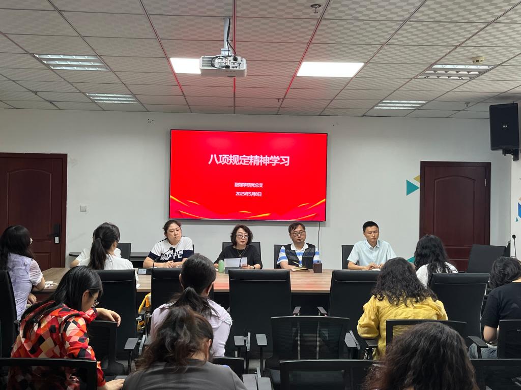 2025年5月8日,融媒学院在图书馆七楼召开全院教职工大会,会议围绕八项规定精神学习教育,以“弘扬教育家精神,加强新时代高素质专业化教师队伍建设”为主题,旨在通过加强作风建设、强化纪律意识、进而提升教师凝聚力和战斗力。会议由融媒学院党总支书记卢隽主持,全院教职工参加。